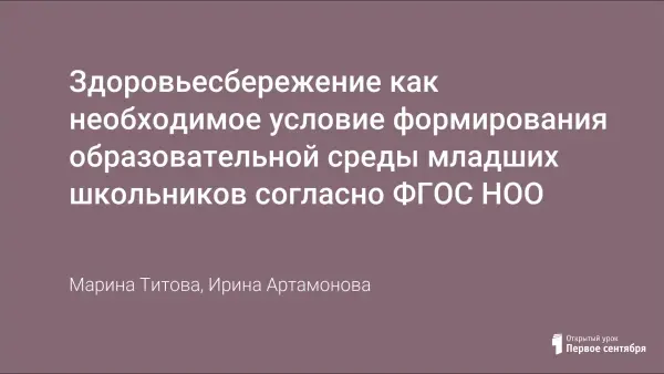 Здоровьесбережение как необходимое условие формирования образовательной среды младших школьников согласно ФГОС НОО