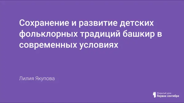 Цель: изучение современных проблем сохранения и развития детского фольклора башкир на основе анализа актуальных исследований теории и практики феноменов духовной культуры.
