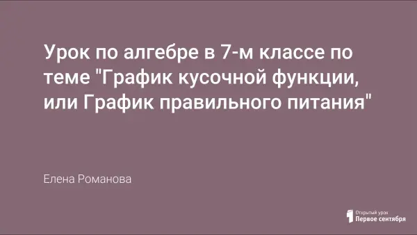 Урок направлен на изучение графика кусочной функции и ознакомление с системой правильного питания школьника; используется частично-поисковый (эвристический) метод (в индивидуальной форме) применение мультимедиа, интерактивных заданий.