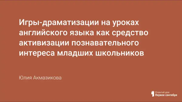 Инсценировка, театральные постановки и игры-драматизации являются важным и необходимым элементом в процессе изучения иностранного языка. Такое препятствие, как «языковой барьер», становится легко преодолимым, как только дети попадают в ситуацию игры, ролевого взаимодействия, оказываются вовлеченными в общий творческий процесс.
