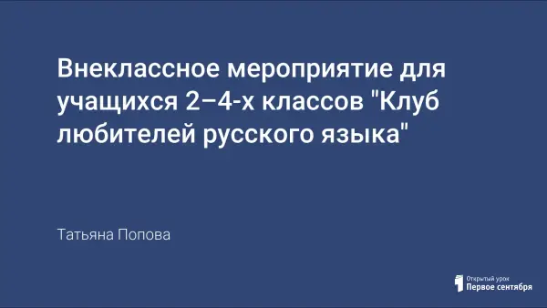 Внеклассное мероприятие проводится по окончании недели русского языка в школе. Участвуют представители всех классов. Конкурсные задания подобраны с учетом возраста участников. Цель проводимого мероприятия: прививать интерес к предмету, учить детей самостоятельно добывать знания, логически и нестандартно мыслить, расширять кругозор.