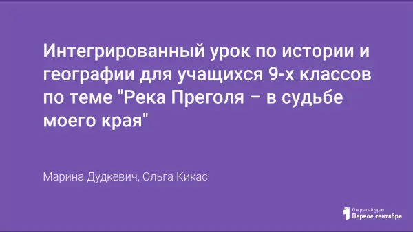 Интегрированный урок по истории и географии для учащихся 9-х классов по теме "Река Преголя – в судьбе моего края"