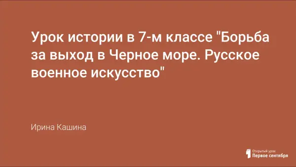 Урок истории в 7-м классе "Борьба за выход в Черное море. Русское военное искусство"