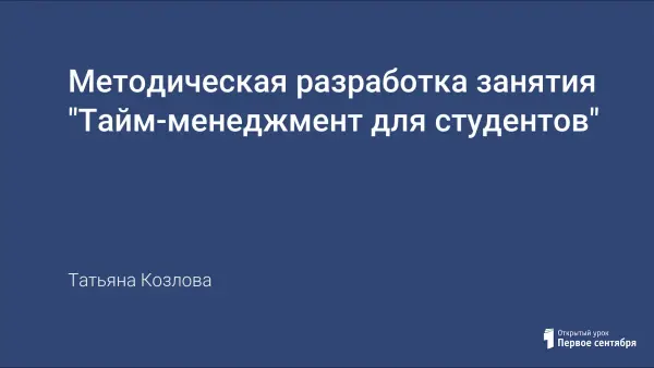 Управления временем – одна из актуальных проблем. От умения распоряжаться временем во многом зависит успешность личности. Цель занятий: формирование навыков тайм-менеджмента. Задачи: помочь студентам осознать необходимость управления временем, создать условия для осознания жизненных целей и освоения приемов планирования и формирования индивидуального тайм-стиля. Используются: работа с метафорой, сказкотерапия, рисуночные технологии, элементы тренинга. Время: 2 занятия по 60 минут.