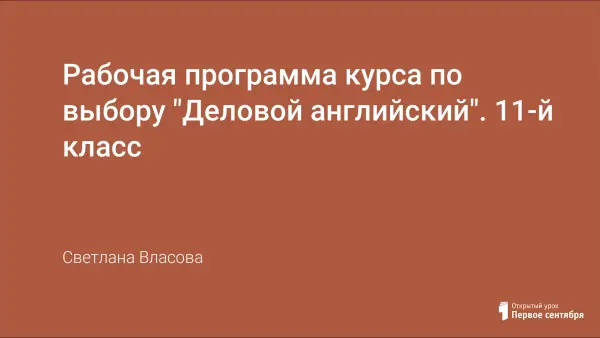 Рабочая программа курса по выбору "Деловой английский". 11-й класс
