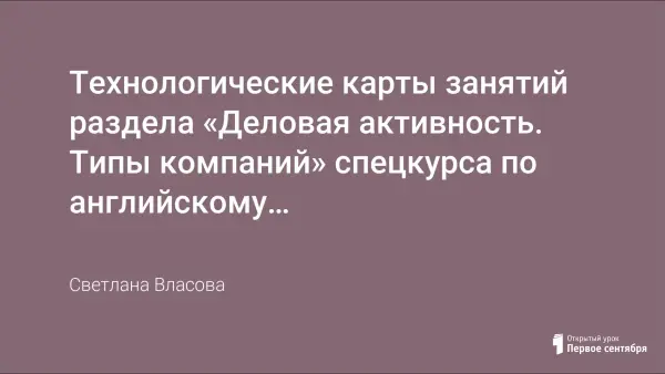Технологические карты занятий раздела «Деловая активность. Типы компаний» спецкурса по английскому языку «Деловой английский» для 11-го класса в рамках внеурочной деятельности