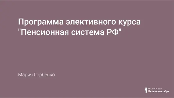 Элективный курс позволит познакомить учащихся с основными положениями пенсионной реформы в РФ, нормативно-правовой базой обязательного пенсионного страхования. Сформировать понимание, что современная пенсионная система России играет огромную роль не только в социальной и общественно-политической жизни государства, но и в его финансово-бюджетной сфере.