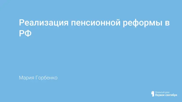 Урок знакомит с основными положениями пенсионной реформы в РФ, нормативно-правовой базой обязательного пенсионного страхования. Формирует понимание, что современная пенсионная система играет огромную роль не только в социальной и общественно-политической жизни государства, но и в его финансово-бюджетной сфере, оказывая значительное влияние на формирование денежных ресурсов, на стабильность и сбалансированность финансовой системы государства, на будущее материальное благосостояние.