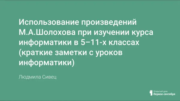 Статья представлена в виде кратких заметок с уроков информатики, в который включен материал регионального характера. Для его создания были использованы произведения донского писателя М.А.Шолохова. Материал способствует созданию условий для патриотического воспитания подрастающего поколения, развития любознательности к культуре, истории и природе донского края; стимулирования познавательного интереса к изучению творчества М.А.Шолохова.