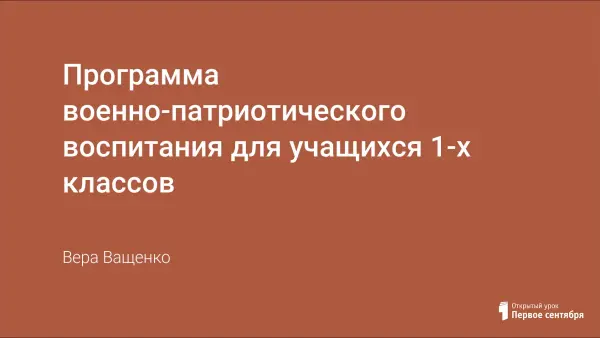 Представлена программа военно-патриотического воспитания для обучающихся первых классов. Программа написана в соответствии с концепцией духовно-нравственного развития и воспитания личности гражданина России стандартов нового поколения (ФГОС НОО). Содержание программы можно варьировать применительно к местному краеведческому материалу.