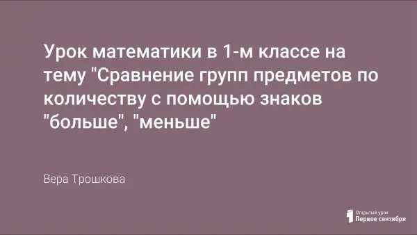 Урок построен таким образом, что дети сами должны сделать вывод о том, что кроме уже известных им знаков "равно" и "неравно", необходимы другие знаки для обозначения того, что в одной группе предметов больше или меньше, чем в другой. Урок знакомства со знаками "больше" и "меньше" и закрепления умения работать с ними проходит в игровой форме.