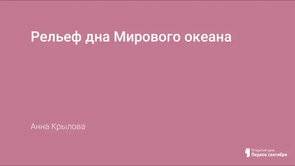 Урок проводится с целью сформировать представление о формах рельефа дна океана; объяснить происхождение таких форм рельефа как шельф, срединно-океанические хребты, глубоководные желоба, происхождение островов.