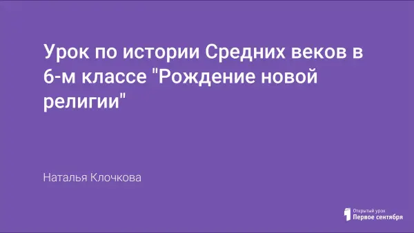 На уроке формируется представление о процессе и причинах возникновения ислама, рассматривается ислам как одна из мировых религий.