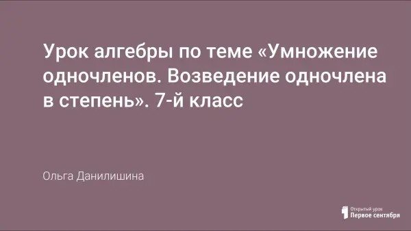 Цели и задачи урока: формировать умение умножать одночлены, возводить одночлены в степень; повторить теоретические сведения по одночленам, правилам умножения одночленов; развивать навыки самоконтроля, логического мышления; способствовать воспитанию культуры общения через работу в парах, группах.