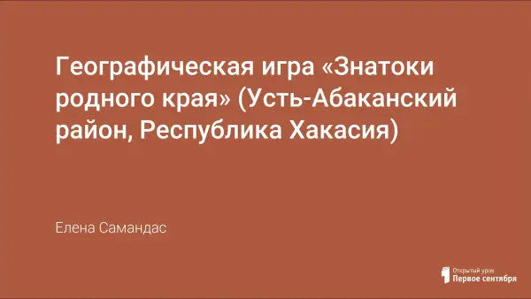 Данная интерактивная географическая игра «Знатоки родного края» может использоваться при проведении занятий по факультативному курсу «Родной край Хакасия» или внеурочной деятельности по краеведению. Цель занятия: в игровой форме проверить знания о своей малой Родине; воспитать уважение к своему родному краю, способствовать укреплению классного коллектива на основе совместной деятельности и сопереживанию за свою команду.