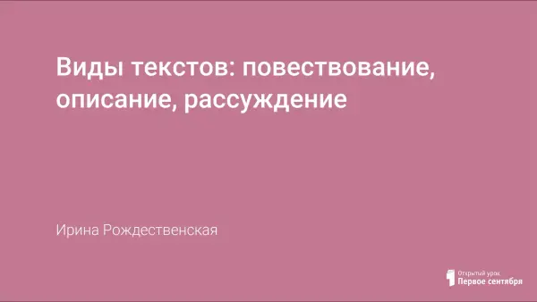 Цели урока: познакомить учащихся с разными видами текстов – повествованием, описанием, рассуждением; формировать умения распознавать их; развивать устную и письменную речь.