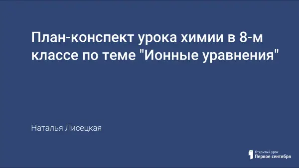 В ходе изучения темы «Ионные реакции» вводится шесть новых понятий: ионные реакции, ионные уравнения, молекулярные уравнения реакций, сокращённое ионное уравнение реакций, реакция нейтрализации, реакции ионного обмена. Целью урока является изучение реакций обмена, идущих до конца, различные виды ионных уравнений, формирование понятия о реакциях нейтрализации.