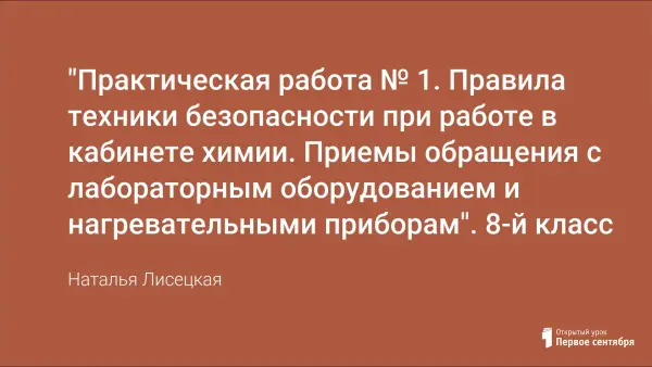В ходе практической работы учащиеся знакомятся с основными правилами техники безопасности при работе в кабинете химии, краткой инструкцией по оказанию первой медицинской помощи при отравлениях химическими веществами и другими поражениями организма; учатся обращаться с лабораторным оборудованием и отрабатывают приемы; изучают строение пламени. Вся работа строится согласно инструктивной карте, результаты работы заносятся в отчёт о проделанной работе.