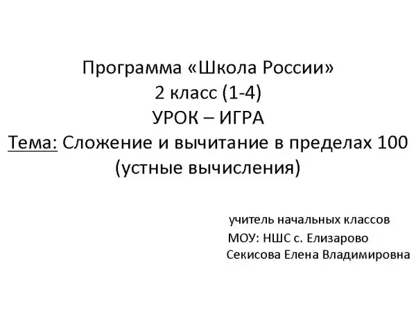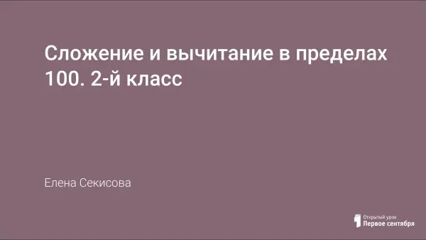 Цели урока: закрепить вычислительные умения и навыки сложения и вычитания в пределах 100 (устные вычисления); развивать логическое мышление, математическую речь; воспитывать самостоятельность.