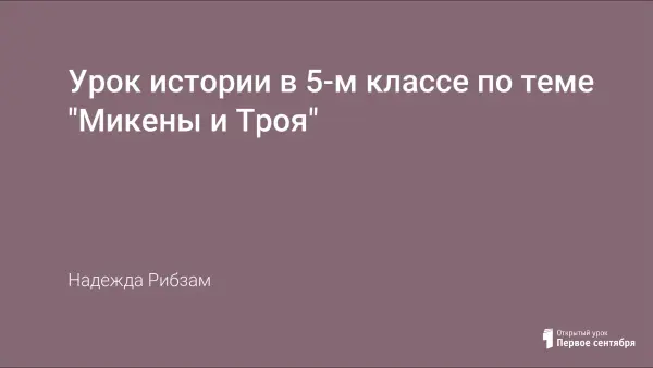 Урок изучения нового материала построен на использовании слайдовой презентации «Микены и Троя», в которой помещены фото развалин Микен и Трои, миф о Троянской войне, творческое задание.