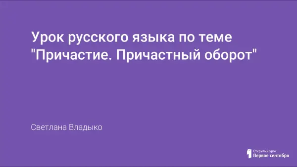 На уроке повторяются основные теоретические сведения о морфологических признаках причастия, что способствует формированию знаний о причастном обороте; развивается умение находить в предложении причастия и причастные обороты, правильно ставить запятые в предложениях с обособленными определениями, составлять связные тексты на лингвистическую тему.