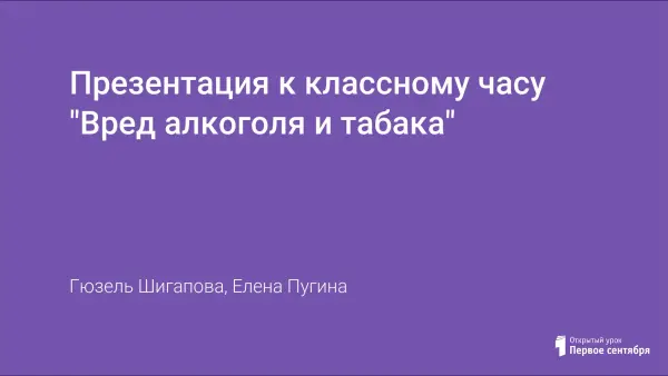 Суть данной разработки — применение презентации о вреде курения и алкоголя во внеклассных мероприятиях и классных часах. Цель: воспитание ценностного отношения к собственному здоровью, стремления к здоровому образу жизни.