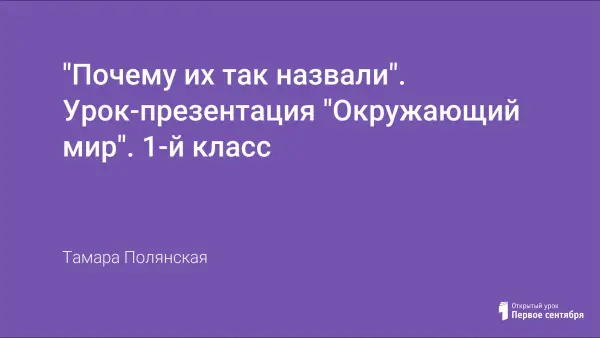 В работе представлен урок-презентация по теме «Почему их так назвали?». В ней наглядно и красочно показано, почему так названы растения – одуванчик, подорожник, колокольчик, звездчатка, копытень недотрога; грибы – маслята, опята, лисички, подберезовик, сыроежка, мухомор; насекомые – жук-олень, жук-носорог, жук-слоник.