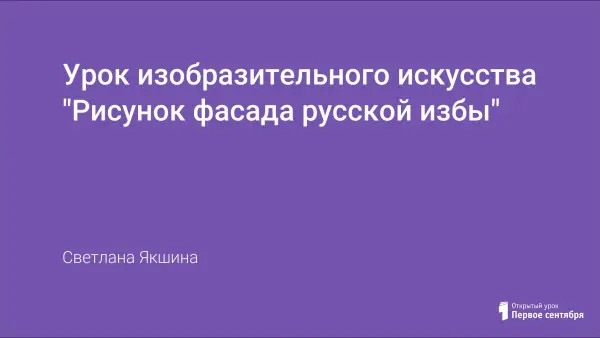 Урок изобразительного искусства по теме «Рисунок фасада русской избы» в 5-м классе приобщает учащихся к культуре и традициям России, расширяются познания в области декоративно-прикладного искусства. Происходит освоение пространства русской культуры через образовательный процесс.