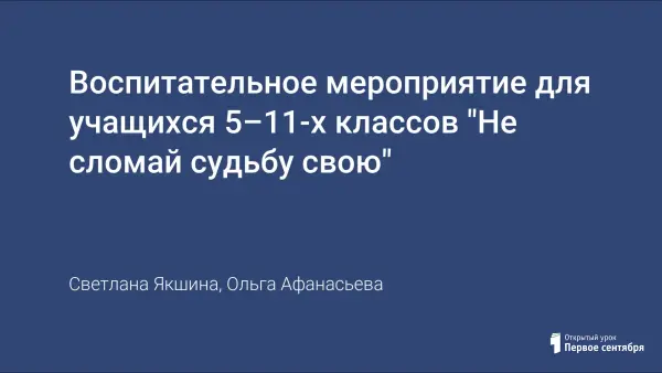 Воспитательное мероприятие для учащихся 5–11-х классов "Не сломай судьбу свою"