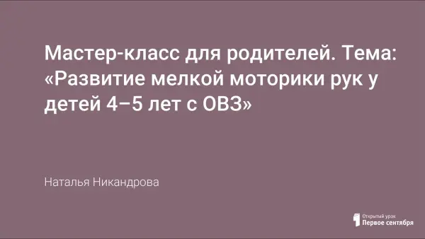 Цель мастер-класса: познакомить родителей детей среднего дошкольного возраста с влиянием мелкой моторики пальцев рук на развитие речи детей.