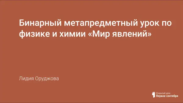 Бинарный метапредметный урок по физике и химии формирует единое представление об изучаемых природных явлениях вокруг основополагающих понятий этих наук, поликультуру (используется информация из истории физических открытий, учитывается знание английского языка, развиваются исследовательские навыки и информационная компетентность). Урок носит творческий характер и не оставит равнодушным ни одного ученика, доставит удовольствие учителю.