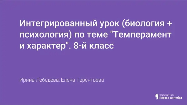 Интегрированный урок (биология + психология) по теме "Темперамент и характер". 8-й класс