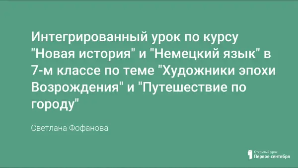 Данный урок рассчитан на учащихся 7-х классов, которые изучают английский и немецкий языки, по курсу «Новая история» (тема «Художники эпохи Возрождения») и по курсу «Немецкий язык» (темы «Путешествие по городу» и «Великие люди страны изучаемого языка»).