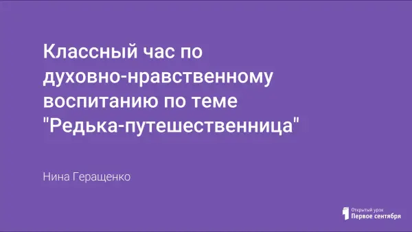 На уроке через духовную сказку, через добрые занимательные сюжеты откроются знания о питательных и целебных свойствах редьки. Когда наш организм не справляется больше с теми нагрузками, стрессами и проблемами, которые нас окружают на каждом шагу, тогда мы обращаемся за помощью к целебным силам, к дарам природы. Если ребенок с детских лет будет знаком с чудесными дарами природы и их свойствами, то ему легче будет в будущем перенести все эти невзгоды, трудности.