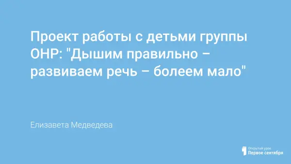 Проект рассчитан на весь период пребывания детей в логопедической группе. Группа набирается сроком на два-три года. Цель проекта: обучить детей доступными средствами через игру, игровые упражнения, тренажер БОС механизму правильного речевого дыхания.