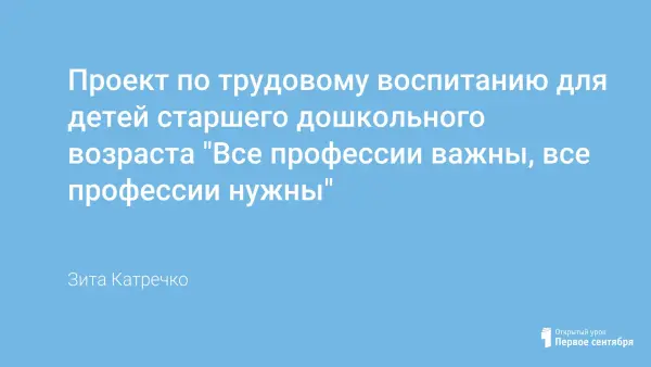 Дети дошкольного возраста мало знают о профессиях. Воспитание уважения к людям труда, интерес к природному и рукотворному миру, в котором ребенку предстоит жить, – единственная возможность формирование сознательного отношения к труду, стремление к созидательной деятельности.