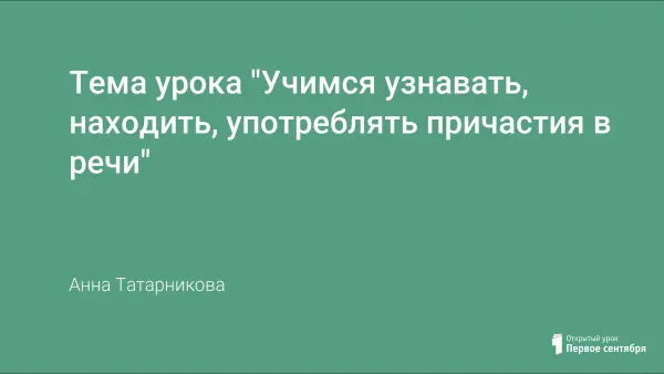 Пристальное внимание на первом уроке по теме "Причастие" уделяется формированию умения находить причастия, опознавать их по специальным суффиксам. Работа с учебной статьей, посвященной причастию и его признакам, выстроена в технологии развития критического мышления через чтение и письмо.