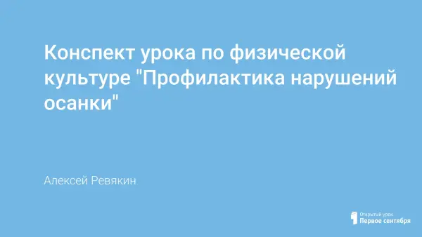 Конспект урока по физической культуре. Тема: «Профилактика нарушений осанки. Комплекс упражнений для улучшения кровоснабжения мышц шеи и спины». Цель урока: формирование общих знаний по профилактике нарушений осанки.