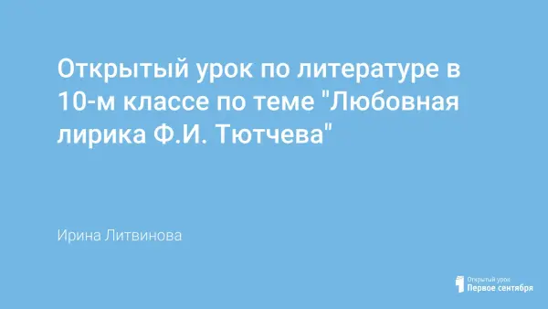 Цели урока: познакомить с любовной лирикой Ф.И.Тютчева, изучить факты биографии, совершенствовать навыки анализа лирического стихотворения, создать благоприятные условия для восприятия поэзии.
