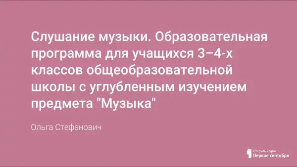 Актуальность предмета «Слушание музыки» как подготовительной ступени к предмету «Музыкальная литература». Соотношение музыки, изобразительного искусства и литературы на уроках «Слушания музыки». Структура программы для учащихся 3–4-х классов, тематизм. Методы активизации зрительного и слухового восприятия детей. Упражнения «В мире загадочных звуков», «Эксперимент», «Палитра чувств» и т.п.