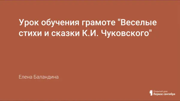 На уроке дети знакомятся с веселыми стихами и сказками К.И. Чуковского. Учащиеся продолжают работу по формированию навыка чтения, расширяют свое представление об окружающем мире, обогащают свой словарный запас.