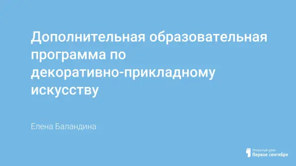Программа ориентирована на теоретические и практические требования к построению курса по декоративно-прикладному искусству для детей начальной школы и предлагает педагогу примерные методические разработки занятий с детьми от 7 до 10 лет.