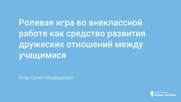 Задачи работы: определить психолого-педагогическую сущность развития межличностных отношений младших школьников; проанализировать педагогический опыт развития межличностных отношений; смоделировать внеклассную работу, направленную на развитие дружеских отношений, с использованием ролевых игр.