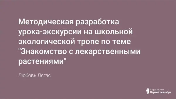 Экскурсия проводится на территории школьной экологической тропы, на остановке «Лекарственные растения». Материал экскурсии рассчитан на один урок, для учащихся 5-х классов. Урок призван познакомить учащихся с основными видами лекарственных растений, произрастающих на территории школьной экологической тропы. Отчёт по уроку-экскурсии ребята представляют в виде презентации, фотографий, дневника с выполненными заданиями.