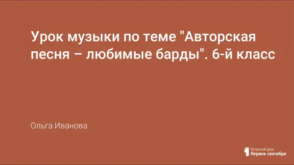 Урок музыки по теме "Авторская песня – любимые барды". 6-й класс