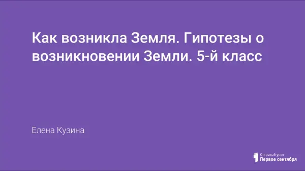 Урок знакомит учащихся с различными гипотезами о возникновения Земли; учеными, внесшими вклад в основу современного представления о происхождении Солнечной системы, в том числе Земли. Цель урока: обобщение и систематизация учебного материала в ходе самостоятельной работы с литературным источником.