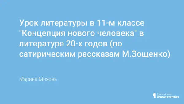 Предлагаемый урок в литературе 20-х годов является разработкой урока-исследования по сатирическим рассказам Михаила Зощенко. Этот урок продолжает цикл уроков, объединенных темой "концепции нового человека" в сатирических произведениях периода 20-х годов (Булгакова "Собачье сердце" и рассказов Зощенко). На уроках исследовался механизм создания смешного и меткость языка зощенковской сатиры.