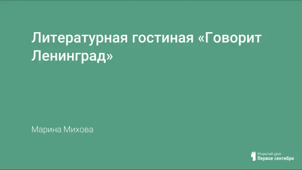 Литературная гостиная «Говорит Ленинград» посвящена 82-й годовщине со дня прорыва блокады Ленинграда. В данной работе раскрывается роль радио как единственного средства общения города Ленинграда со страной в годы Великой Отечественной войны. В литературной гостиной показывается роль поэзии, которая приняла на себя благородное бремя почти всего искусства в годы блокады.
