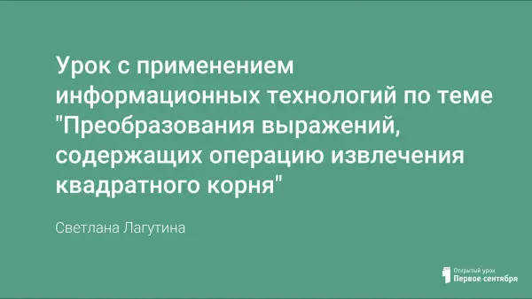 Данная тема является продолжением предыдущей "Свойства квадратного корня" и имеет применение при изучении темы "Квадратные уравнения". Основная цель урока: применить свойства корней и умение раскладывать выражения на множители для преобразования выражений, содержащих квадратные корни.