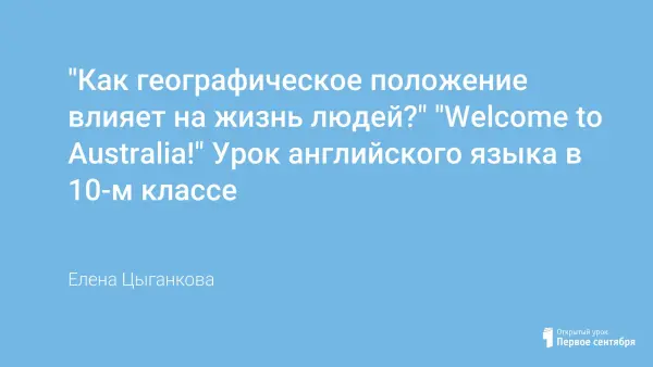 Урок помогает рассмотреть не только особенности Австралии как страны, отделенной от всего континента, но и её животный мир, жизнь населения, интересные факты из истории появления. Поэтому девизом урока может быть слоган: "Welcome to Australia!"
